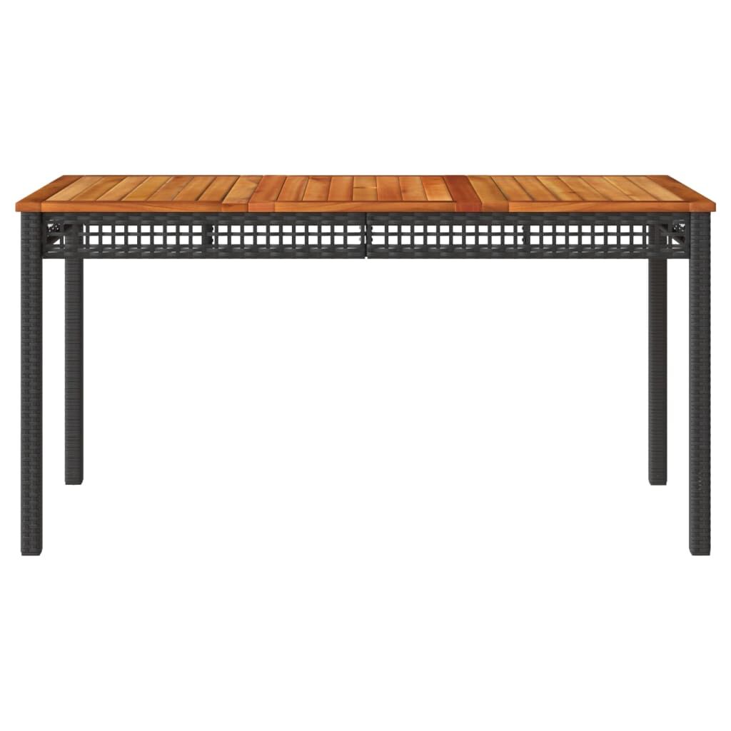 Gather around this garden table to enjoy a meal or have a chat with your family and friends in the garden, backyard, or on the patio! Durable material: PE rattan, also known as poly rattan, is a strong, low-maintenance synthetic material that looks like natural rattan. It's lightweight, easy to clean, and commonly used for outdoor furniture due to its durability and weather-resistant properties.Stable and easy-to-clean tabletop: This garden table has an acacia wood top that is sturdy, durable, and easy to clean with a damp cloth.Robust and stable frame: The powder-coated steel frame ensures that the garden furniture is strong and stable for daily outdoor use. Good to know:To make sure your outdoor furniture stays beautiful, we recommend protecting it with a waterproof cover.