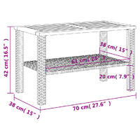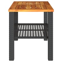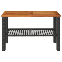 Gather around this garden table to enjoy a cup of coffee or have a chat with your family and friends in the garden, backyard, or on the patio! Durable material: PE rattan, also known as poly rattan, is a strong, low-maintenance synthetic material that looks like natural rattan. It's lightweight, easy to clean, and commonly used for outdoor furniture due to its durability and weather-resistant properties.Stable and easy-to-clean tabletop: This garden table has an acacia wood top that is sturdy, durable, and easy to clean with a damp cloth.Robust and stable frame: The powder-coated steel frame ensures that the garden furniture is strong and stable for daily outdoor use. Good to know:To make sure your outdoor furniture stays beautiful, we recommend protecting it with a waterproof cover.