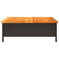Gather around this garden table to enjoy a cup of coffee or have a chat with your family and friends in the garden, backyard, or on the patio! Durable material: PE rattan, also known as poly rattan, is a strong, low-maintenance synthetic material that looks like natural rattan. It's lightweight, easy to clean, and commonly used for outdoor furniture due to its durability and weather-resistant properties.Practical parasol hole: There is a parasol hole in the table top so you can easily attach a parasol to create a shady spot.Stable and easy-to-clean tabletop: This garden table has an acacia wood top that is sturdy, durable, and easy to clean with a damp cloth.Robust and stable frame: The powder-coated steel frame ensures that the garden furniture is strong and stable for daily outdoor use. Good to know:To make sure your outdoor furniture stays beautiful, we recommend protecting it with a waterproof cover.
