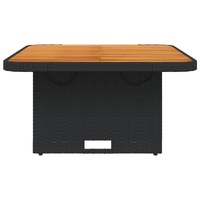 Gather around this versatile garden table to enjoy a cup of coffee or have a chat with your family and friends in the garden, backyard, or on the patio! Durable material: PE rattan, also known as poly rattan, is a strong, low-maintenance synthetic material that looks like natural rattan. It's lightweight, easy to clean, and commonly used for outdoor furniture due to its durability and weather-resistant properties. Adjustable tabletop: The tabletop can be lifted to make the table higher, which transforms the outdoor table from a coffee table to a dining table. It's perfect for having guests over or eating meals outside. Stable and easy-to-clean tabletop: This garden table has an acacia wood top that is sturdy, durable, and easy to clean with a damp cloth. Robust and stable frame: The powder-coated steel frame ensures that the garden furniture is strong and stable for daily outdoor use. Good to know: To make sure your outdoor furniture stays beautiful, we recommend protecting it with a waterproof cover.