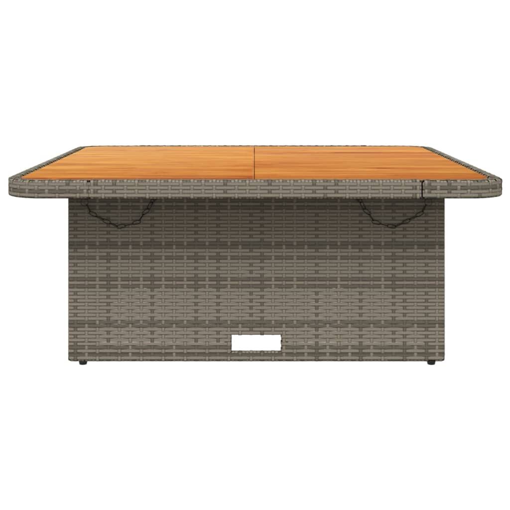 Gather around this versatile garden table to enjoy a cup of coffee or have a chat with your family and friends in the garden, backyard, or on the patio! Durable material: PE rattan, also known as poly rattan, is a strong, low-maintenance synthetic material that looks like natural rattan. It's lightweight, easy to clean, and commonly used for outdoor furniture due to its durability and weather-resistant properties. Adjustable tabletop: The tabletop can be lifted to make the table higher, which transforms the outdoor table from a coffee table to a dining table. It's perfect for having guests over or eating meals outside. Stable and easy-to-clean tabletop: This garden table has an acacia wood top that is sturdy, durable, and easy to clean with a damp cloth. Robust and stable frame: The powder-coated steel frame ensures that the garden furniture is strong and stable for daily outdoor use. Good to know: To make sure your outdoor furniture stays beautiful, we recommend protecting it with a waterproof cover.