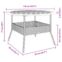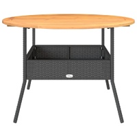 Gather around this garden table to enjoy a coffee or have a chat with your family and friends in the garden, backyard, or on the patio! Durable material: PE rattan, also known as poly rattan, is a strong, low-maintenance synthetic material that looks like natural rattan. It's lightweight, easy to clean, and commonly used for outdoor furniture due to its durability and weather-resistant properties.Solid wood tabletop: This garden table has a wooden top that is sturdy, durable, and easy to clean with a damp cloth.Robust and stable frame: The powder-coated steel frame ensures that the garden furniture is strong and stable for daily outdoor use. Good to know:To make sure your outdoor furniture stays beautiful, we recommend protecting it with a waterproof cover.