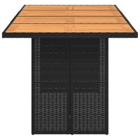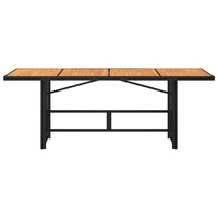 This garden table with a wooden top, designed with clean and simple lines, is an excellent choice for your garden, patio, and other outdoor space. Durable material: PE rattan, also known as poly rattan, is a strong, low-maintenance synthetic material that looks like natural rattan. It's lightweight, easy to clean, and commonly used for outdoor furniture due to its durability and weather-resistant properties.Solid wood tabletop: This garden dining table has a wooden top that is sturdy, durable, and easy to clean with a damp cloth.Robust and stable frame: The powder-coated steel frame ensures that the garden furniture is strong and stable for daily outdoor use. Good to know:To make sure your outdoor furniture stays beautiful, we recommend protecting it with a waterproof cover.
