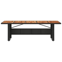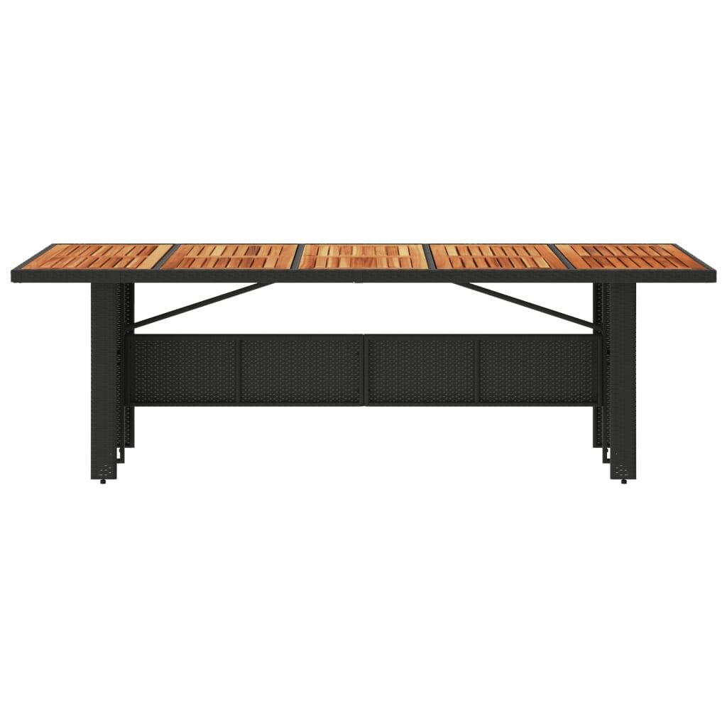 This garden table with a wooden top, designed with clean and simple lines, is an excellent choice for your garden, patio, and other outdoor space. Durable material: PE rattan, also known as poly rattan, is a strong, low-maintenance synthetic material that looks like natural rattan. It's lightweight, easy to clean, and commonly used for outdoor furniture due to its durability and weather-resistant properties.Stable and easy-to-clean tabletop: This garden table has an acacia wood top that is sturdy, durable, and easy to clean with a damp cloth.Robust and stable frame: The powder-coated steel frame ensures that the garden furniture is strong and stable for daily outdoor use. Good to know:To make sure your outdoor furniture stays beautiful, we recommend protecting it with a waterproof cover.
