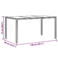 This garden table with a glass top, designed with clean and simple lines, is an excellent choice for your garden, patio, and other outdoor space. Durable material: PE rattan, also known as poly rattan, is a strong, low-maintenance synthetic material that looks like natural rattan. It's lightweight, easy to clean, and commonly used for outdoor furniture due to its durability and weather-resistant properties.Glass tabletop: The outdoor table's top is made from strong and durable tempered glass, making it easy to clean with a damp cloth and adding a touch of elegance to your outdoor space.Robust and stable frame: The powder-coated steel frame ensures that the garden furniture is strong and stable for daily outdoor use. Good to know:To make sure your outdoor furniture stays beautiful, we recommend protecting it with a waterproof cover.