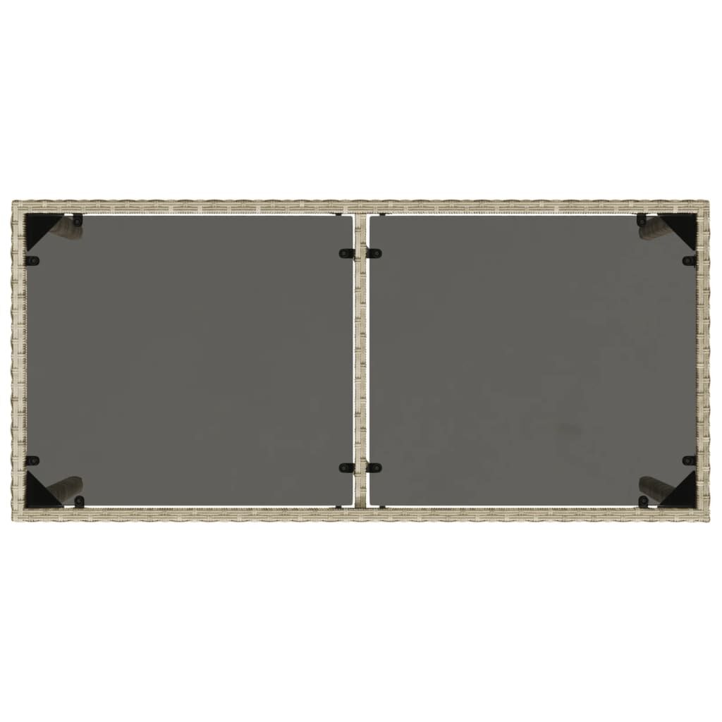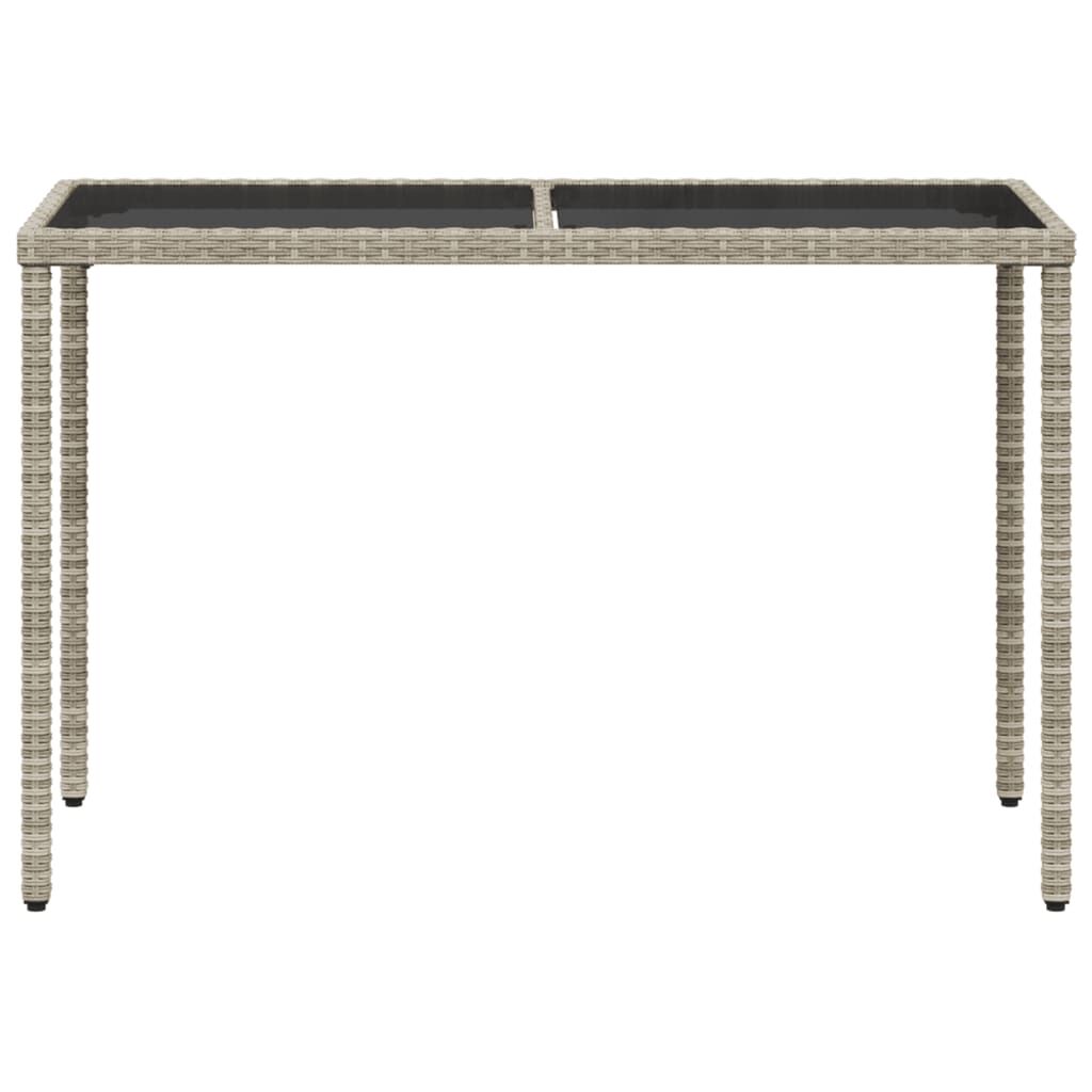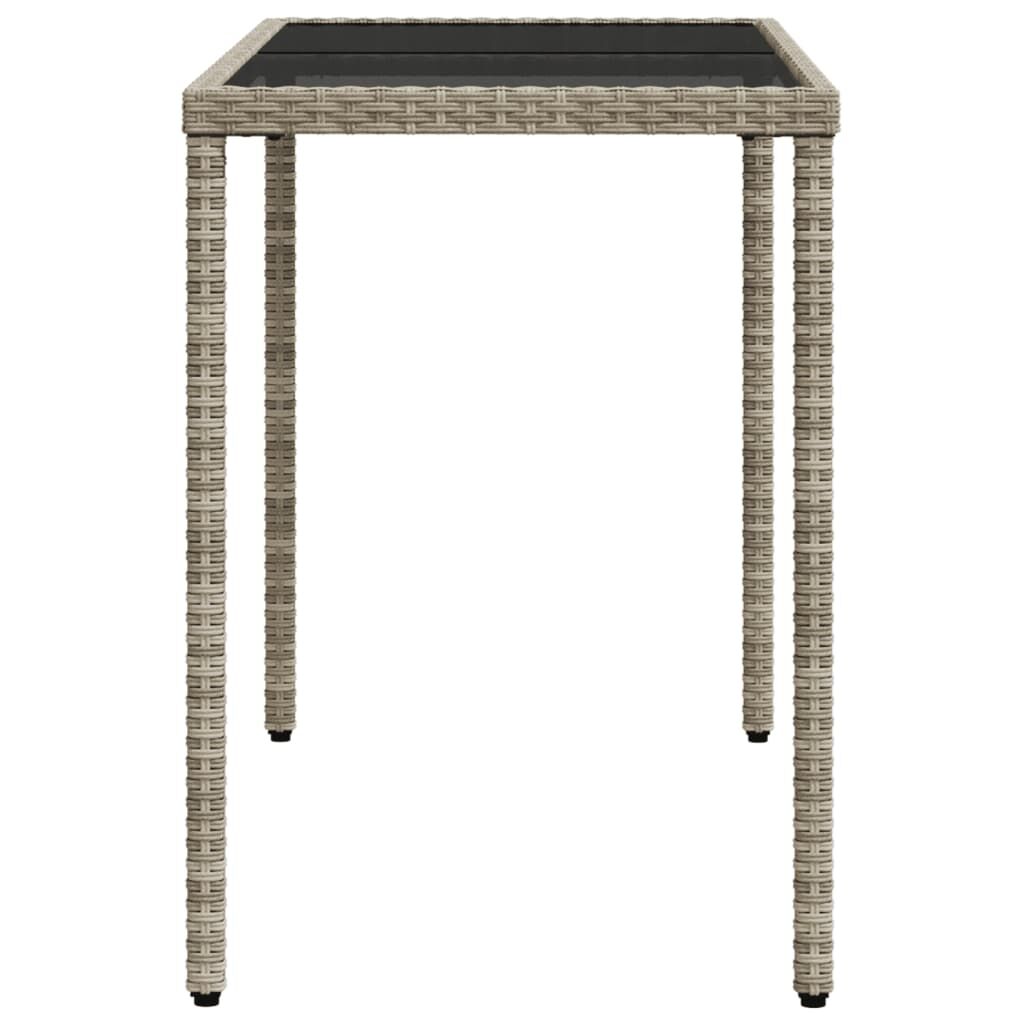 This garden table with a glass top, designed with clean and simple lines, is an excellent choice for your garden, patio, and other outdoor space. Durable material: PE rattan, also known as poly rattan, is a strong, low-maintenance synthetic material that looks like natural rattan. It's lightweight, easy to clean, and commonly used for outdoor furniture due to its durability and weather-resistant properties.Glass tabletop: The outdoor table's top is made from strong and durable tempered glass, making it easy to clean with a damp cloth and adding a touch of elegance to your outdoor space.Robust and stable frame: The powder-coated steel frame ensures that the garden furniture is strong and stable for daily outdoor use. Good to know:To make sure your outdoor furniture stays beautiful, we recommend protecting it with a waterproof cover.
