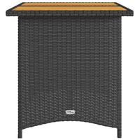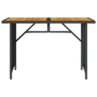 This garden table with wooden top, designed with clean and simple lines, is an excellent choice for your garden, patio, and other outdoor space. Durable material: PE rattan, also known as poly rattan, is a strong, low-maintenance synthetic material that looks like natural rattan. It's lightweight, easy to clean, and commonly used for outdoor furniture due to its durability and weather-resistant properties.Wooden tabletop: The outdoor table's top is made from sturdy and durable acacia wood, making it easy to clean with a damp cloth and adding a touch of elegance to your outdoor space.Robust and stable frame: The powder-coated steel frame ensures the garden furniture is strong and stable for daily outdoor use. Good to know:To make sure your outdoor furniture stays beautiful, we recommend protecting it with a waterproof cover.