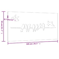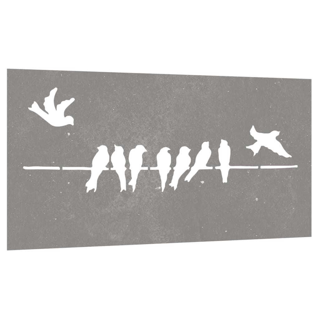 Turn a blank wall or fence into a masterpiece with this garden wall decoration. Durable material: Corten steel, also known as weathering steel. This is anti-corrosive by its very nature. It develops a rusty protective layer against corrosion when first exposed to atmospheric conditions. Thus, you don't need to paint it. This can help you save on maintenance and repair costs. The distinctive brown colour on the corten steel will surely be an eye-catcher. Finally, weathering steel is exceptionally durable and will stand up to the test of time.Exquisite design: The metal wall decoration adopts a hollow design of birds on line pattern, making your garden more attractive.Easy installation: The outdoor wall decoration is easy to install with the mounting holes on the back. Good to know:This product is not rusted yet and has a normal metal colour when you receive it, but rust will develop over time. You could speed up the rusting process by spraying it with soap water and salt water. To keep your clothes stain-free, avoid contact with the developing rust layer.