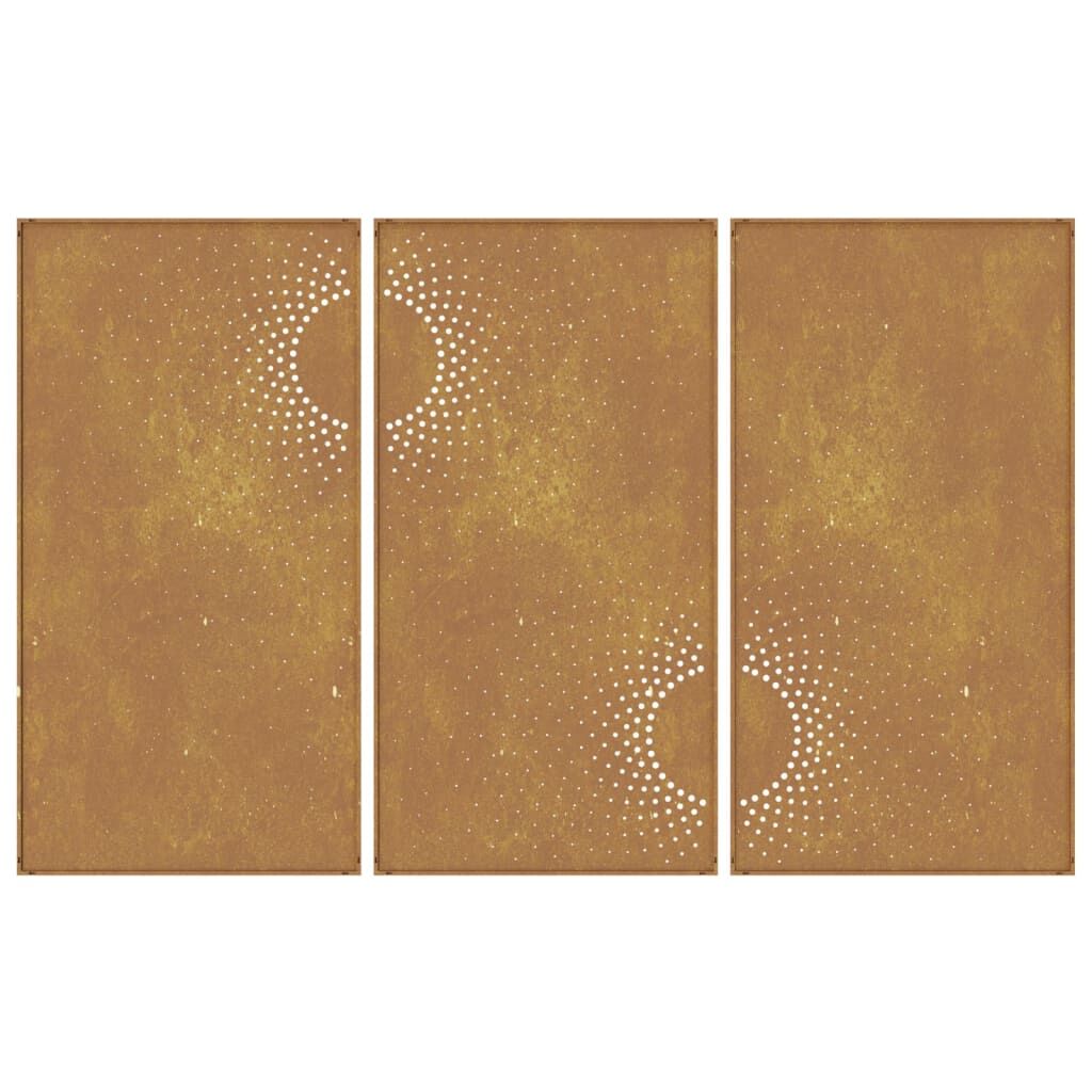 Turn a blank wall or fence into a masterpiece with these garden wall decorations. Durable material: Corten steel, also known as weathering steel. This is anti-corrosive by its very nature. It develops a rusty protective layer against corrosion when first exposed to atmospheric conditions. Thus, you don't need to paint it. This can help you save on maintenance and repair costs. The distinctive brown colour on the corten steel will surely be an eye-catcher. Finally, weathering steel is exceptionally durable and will stand up to the test of time.Exquisite design: The metal wall decoration adopts a hollow design of the sun pattern, creating a natural atmosphere in your garden.Easy installation: The outdoor wall decoration is easy to install with the mounting holes on the back. Good to know:This product is not rusted yet and has a normal metal colour when you receive it, but rust will develop over time. You could speed up the rusting process by spraying it with soap water and salt water. To keep your clothes stain-free, avoid contact with the developing rust layer.