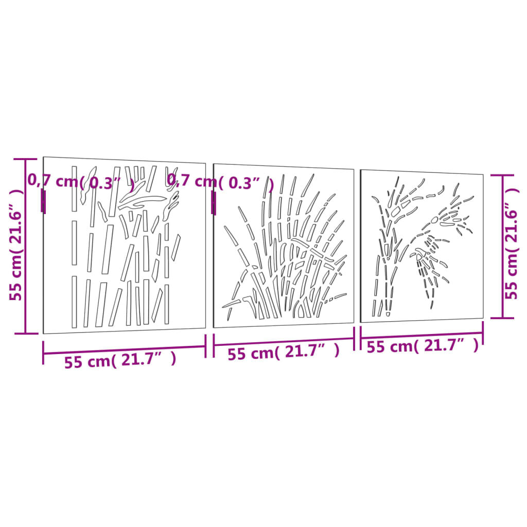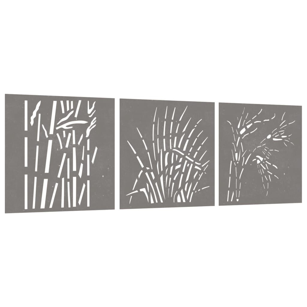 Turn a blank wall or fence into a masterpiece with these garden wall decorations. Durable material: Corten steel, also known as weathering steel. This is anti-corrosive by its very nature. It develops a rusty protective layer against corrosion when first exposed to atmospheric conditions. Thus, you don't need to paint it. This can help you save on maintenance and repair costs. The distinctive brown colour on the corten steel will surely be an eye-catcher. Finally, weathering steel is exceptionally durable and will stand up to the test of time.Exquisite design: The metal wall decoration adopts a hollow design of grass pattern, creating a natural atmosphere in your garden.Easy installation: The outdoor wall decoration is easy to install with the mounting holes on the back. Good to know:This product is not rusted yet and has a normal metal colour when you receive it, but rust will develop over time. You could speed up the rusting process by spraying it with soap water and salt water. To keep your clothes stain-free, avoid contact with the developing rust layer.