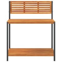 This garden work table is perfect for storage and is an ideal choice for growing a variety of flowers or plants. Stable and long-lasting frame: Solid acacia wood is known for its strength and durability. Its diverse colours and unique grain patterns give it an attractive appearance. With good stability and resistance to weathering, it is ideal for crafting indoor and outdoor furniture.Sturdy frame: The powder-coated steel frame is strong, stable, durable, and resistant to corrosion and harsh weather, ensuring long-lasting performance.Ample workplace: The powder-coated steel prep table is designed with a bottom shelf and a overshelf for customised storage space, providing ample storage space for your potting soil and plant accessories, or any other tools you may need.Practical backsplash: The backslash effectively protects your walls from scratches and dirty water, ensuring a clean and tidy garden.
