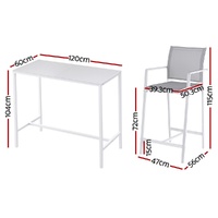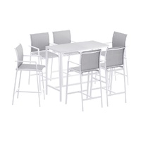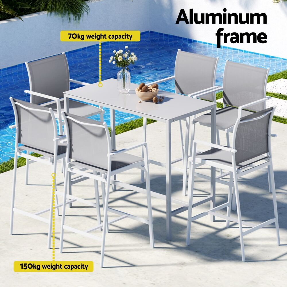 Elevate your outdoor living with Gardeon's complete 7-piece bar set (1 table + 6 stools). The powder-coated steel frames and tempered glass tabletop combine durability with modern elegance, perfect for all-weather use. Enjoy exceptional comfort with high-back stools featuring breathable fabric seats and built-in footrests. The space-saving design tucks neatly under the table when not in use. Non-slip feet ensure stability on any surface. Ideal for poolside entertaining, garden parties or balcony dining, this rust-resistant set comfortably seats 6. Quick assembly and weatherproof materials make it a stylish, long-lasting outdoor solution.