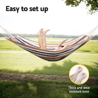 Relax in style with the Gardeon Hammock Bed, designed for ultimate comfort and durability. The lightweight and easy-to-carry hammock features superior strength and wear-resistant materials, making it perfect for both indoor and outdoor use. With plenty of space to support two adults, it's the ideal choice for any lounging spot. Please note that the stand is not included.