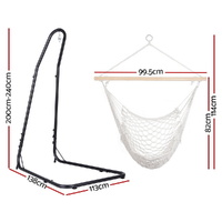 Gardeon hanging hammock chair set is a piece of excellent furniture, suitable for outdoor and indoor use. It is made from strength cotton rope, and the powder-coated steel frame is designed to be weather and rust-resistant. Our U-shaped base hammock chair can hold up to 90kg in weight and offers stability. Plus, it's easy to install with one single attachment point for absolute safety. This versatile furniture set is suitable to be placed by the poolside, in the backyard, or in any corner of your home. Not least, this chair offers ample support to your body.