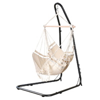 Gardeon hanging hammock chair set is a piece of excellent furniture, suitable for outdoor and indoor use. It is made from quality polyester cotton blend fabric and has a solid timber rail for strength and durability, and the powder-coated steel frame is designed to be weather and rust-resistant. Our U-shaped base hammock chair can hold up to 120kg in weight and offers stability. Plus, it's easy to install with one single attachment point for absolute safety. This versatile furniture set is suitable to be placed by the poolside, in the backyard, or in any corner of your home. Not least, this chair offers ample support to your body.