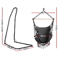 Gardeon hanging hammock chair set is a piece of excellent furniture, suitable for outdoor and indoor use. It is made from quality polyester cotton blend fabric and has a solid timber rail for strength and durability, and the powder-coated steel frame is designed to be weather and rust-resistant. Our U-shaped base hammock chair can hold up to 120kg in weight and offers stability. Plus, it's easy to install with one single attachment point for absolute safety. This versatile furniture set is suitable to be placed by the poolside, in the backyard, or in any corner of your home. Not least, this chair offers ample support to your body.