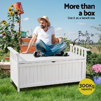 NOW $150.26Have a cuppa, read a book, and or just chill out with friends and family among the greenery with our Gardeon Storage Box Bench. It may look like a storage box, but also doubles as a bench and allows you to enjoy the fresh outdoors with your feet up. Our bench is constructed from quality fir wood that is both insect and rot-resistant for all-weather use, making the bench suitable for indoor use or outdoor use in the garden or patio. Lift up the seat and you have ample storage space for all your pet food, gardening tools, outdoor cushions and more so that your garden stays neat and uncluttered. The interior is even water-resistant so that all your stored items remain dry and protected from the rain and other sources of moisture.