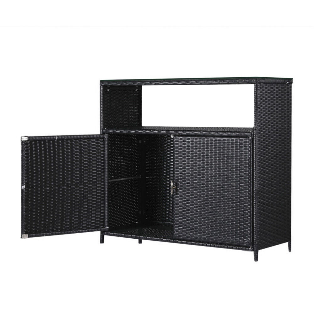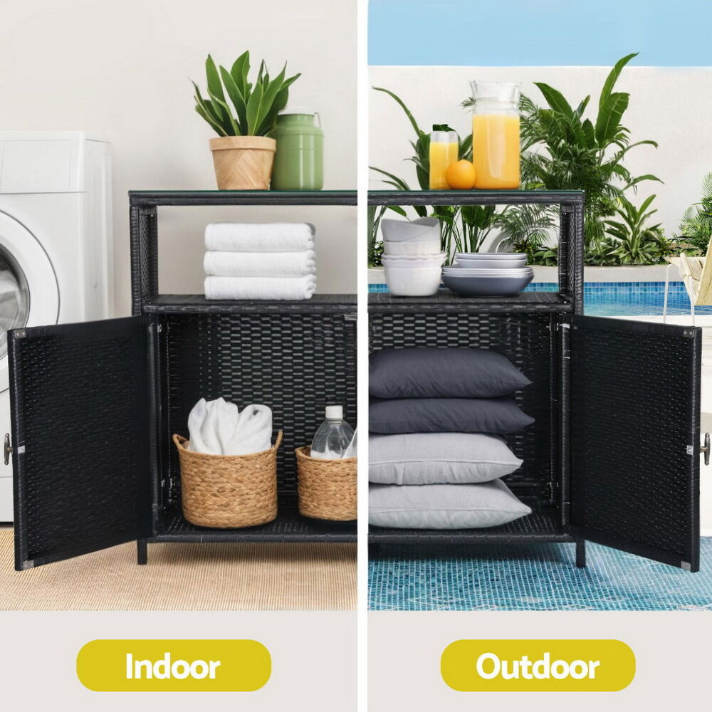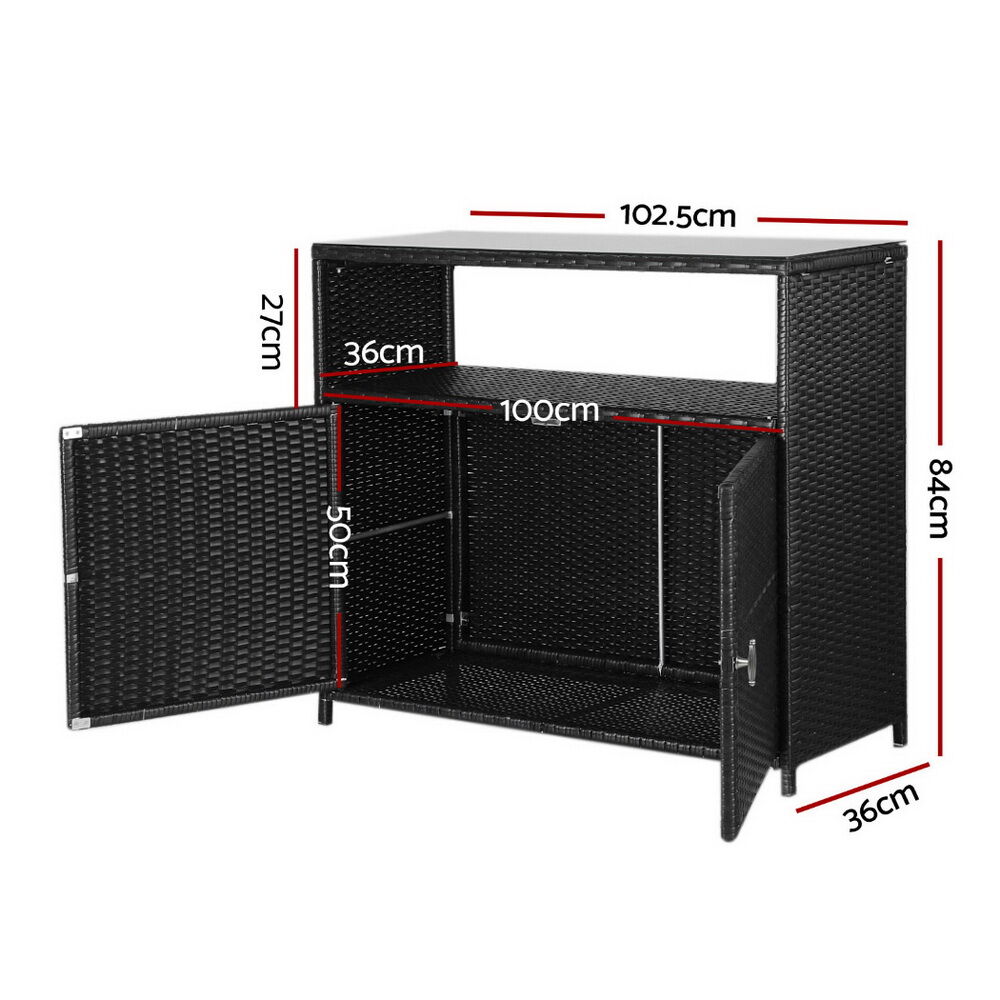 Looking for extra storage for storing your garden or outdoor essentials and expensive tools? We've got you covered. Tidy up your outdoor space and keep things organised with our excellently designed Gardeon outdoor wicker storage cabinet. It flaunts fantastic 2-in-1 design, which makes for versatile use. You can use it as a storage cabinet to store your outdoor essentials and a bar table. It's boasts sturdy aluminium construction, which contributes to its strong inherent structure. It also comes with exquisite handles for easy opening and closing and wall attachment points for safety. Tall, slim, and pleasant looking, this storage cabinet features a gorgeous handwoven PE wicker look and feel that you'll love. It's spacious and has a great weight holding capacity. Additionally, it offers good weather resistance and won't rust, which makes it suitable for outdoor use. Why wait? Bring home this fabulous Gardeon outdoor wicker storage cabinet today!