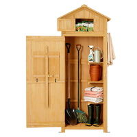 Organize and protect your garden tools with Gardeon sturdy wooden storage cabinet! Designed for efficiency, it includes a lockable top compartment, three removable shelves, and plenty of room for shovels, rakes, hoses, and more. The handy foldable door table provides extra workspace, while multiple hooks keep small tools within reach. Built from solid fir wood with a weather-resistant pvc roof, it stands up to rain, sun, and outdoor wear. With reinforced hinges and a secure latch, this cabinet ensures long-lasting durability. Ideal for gardens, patios, or garages, it blends practical storage with rustic charm for a clutter-free outdoor space!