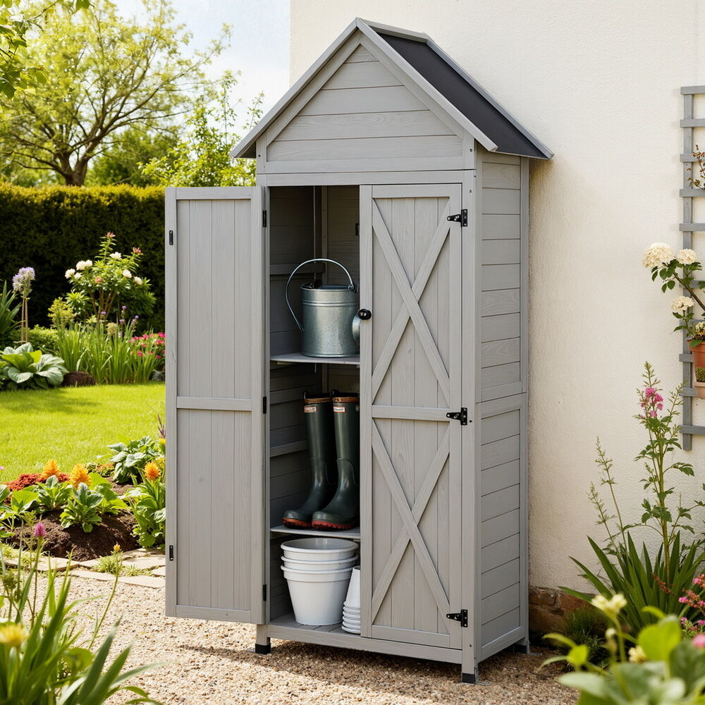 Organize with Gardeon's Spacious Outdoor Storage Cabinet -featuring 3 shelves and ample storage for all your tools & gear. Built to last, this weatherproof outdoor cupboard combines solid fir wood and a durable PVC roof for all-season protection. The 2cm thick wood resists cracks and corrosion, ensuring long-lasting use. Easy assembly with numbered parts, full hardware, and a clear guide. Versatile as a garden cupboard, balcony storage, or outdoor cabinet, all with a sleek wood finish.