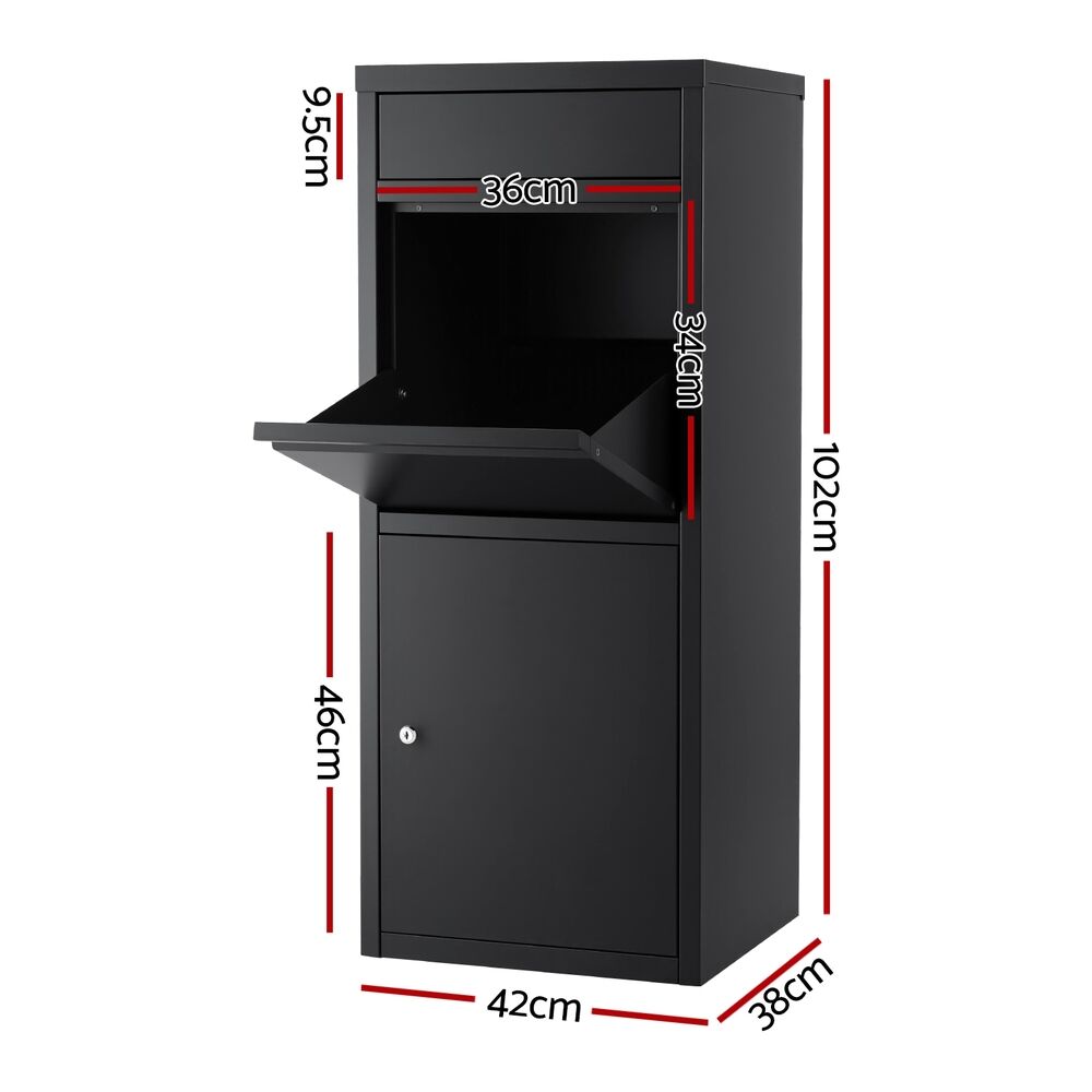 NOW $168.67Heavy-duty weatherproof steel frame withstands Aussie elements. Features 2 slots drop design for mail + parcels with 90° large opening for bulky items. Secured locked cabinet includes 2 keys for safe collection. Large storage capacity with soft bottom cushion (2cm thick) protecting deliveries. Ideal for driveways or porches.