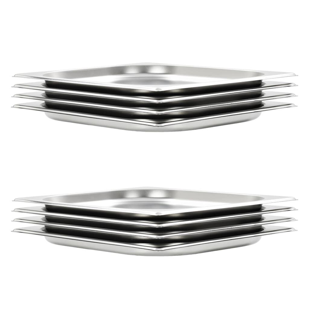 $58.27These stackable Gastronorm containers will be great additions to your kitchenware. Made of strong stainless steel, the steam table pan has a solid construction and is easy to clean.The hardwearing material makes it scratch-free and easy to maintain. The food pan features the standard Gastronorm dimensions, thus allowing universal use and a wide range of combinations. Consequently, it fits perfectly in all your professional kitchen cabinets and equipment like bain-marie, chafing dishes and salad bars. The cookware is stackable and can be hidden away to save space, therefore it is very practical and ideal for using in restaurants, hotels, parties, as well as at home. Delivery includes 8 pans.