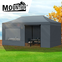 Mountview Gazebo offers a good shade protection on any outdoor event. Made by reinforced steel construction which is anti-rust and steady to last for decades. It features 4 adjustable height to match your desire preferences. Premium double sided 420D Oxford fabric with PVC coating, it is not only protecting from harsh UV rays, but also 100% waterproof. Strong supporting leg and sturdy joints allows an extra stability. Hook-and-loop attachment for hassle-free use. Portable design for easy installation, convenient set up for any occasion such as marketplace, camping etc.