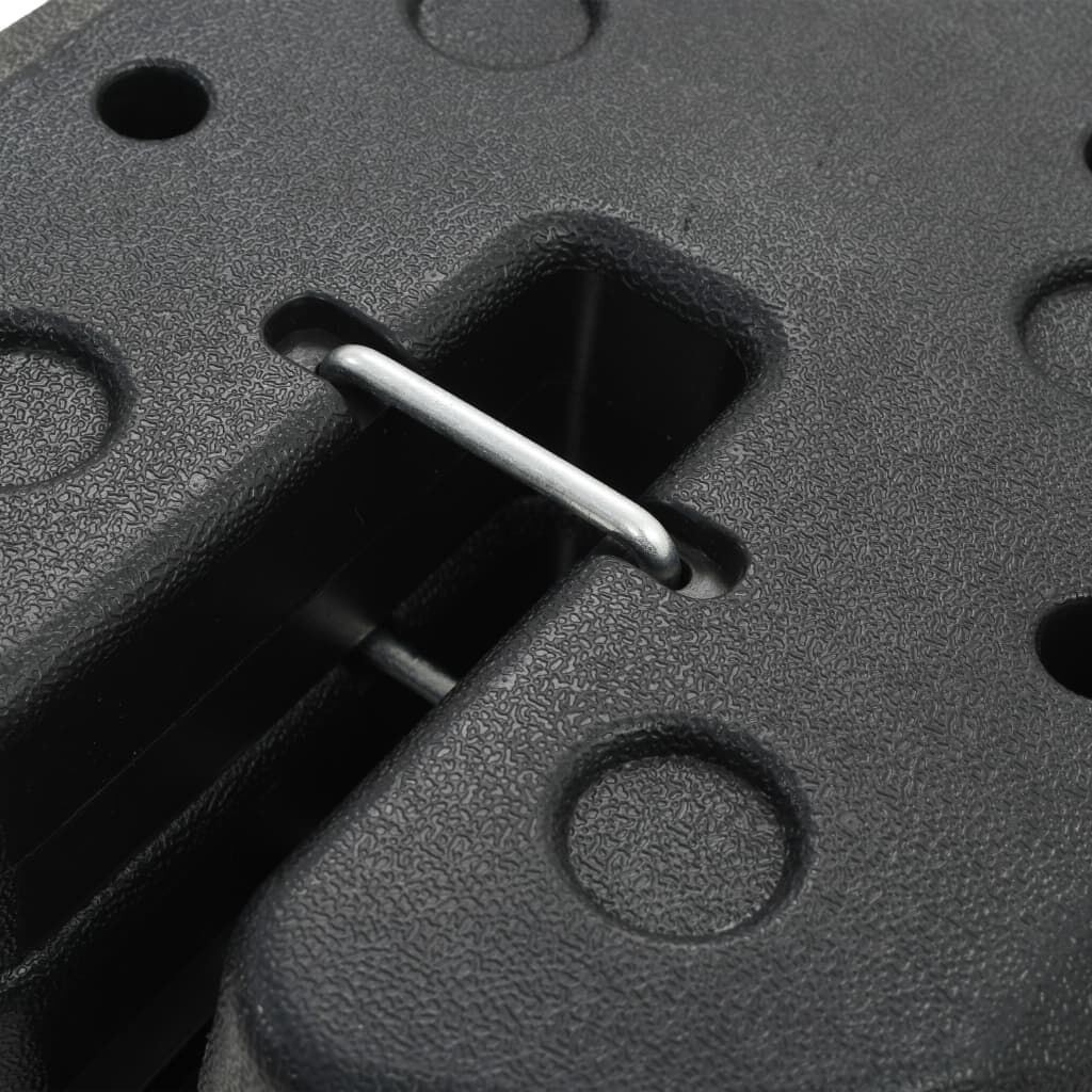 Our 4 pieces of weight plates will provide a cost-effective option for safely securing your gazebos, party tents, outdoor parasols or any other outdoor equipment. Made of concrete inside and covered with plastic, these base weights are durable and weather resistant. Each weight is suitable for the tube size up to 30 mm. This set of weights can be stacked on top of each other to prevent your tent topple or fly away in high winds. Our gazebo weight plates are easy to use and transport.