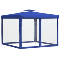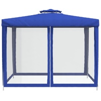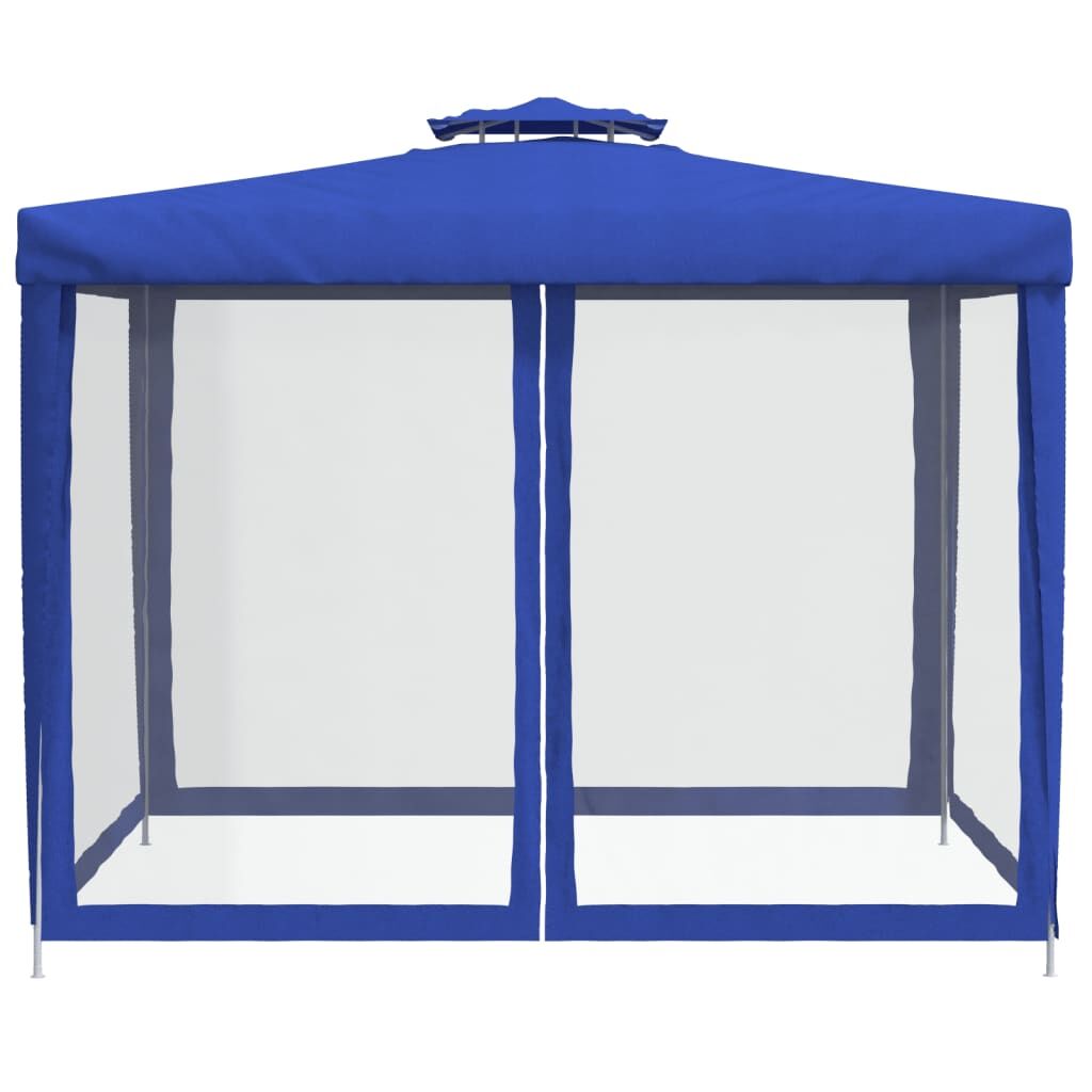 This gazebo, featuring a water-resistant double roof and four mesh sidewalls, is an ideal shelter from the sun. Durable material: Polyester is a synthetic material known for its UV resistance and its tensile strength. Polyester is water-resistant, which makes it the perfect choice for humid or rainy conditions, and is also easy to clean.Sturdy construction: The steel frame of this pavilion ensures sturdiness and stability.Great protection: The marquee with 1 double roof and 4 mesh sidewalls provides great protection from the sun, rain, and wind, making it a great option for outdoor events.Practical design: One of the side walls has a zipper for entrance and easy access. Also, this event tent is easy to set up and take down.Versatile design: This shelter tent can be used for a wide range of purposes, from outdoor dining and entertaining to relaxation and meditation.