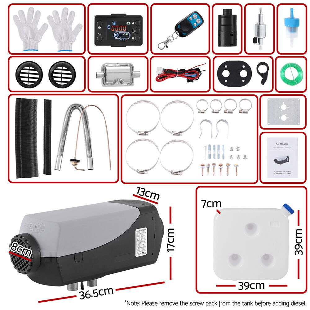 $162.61For fast and efficient heating on the go, the Giantz 5KW Portable Diesel Air Heater is a fantastic climate control solution that suits a wide variety of vehicles including caravans, motorhomes, trucks, camping trailers, buses, boats, machinery and more. With its low-noise operation, you can enjoy a peaceful environment while staying warm. The heater features a large 10L fuel tank, ensuring long-lasting heating without the need for frequent refills. Designed with energy-saving oil pump technology, this heater boasts low fuel consumption while providing a high heat output. The LCD monitor control allows for easy temperature adjustments, while the 30-metre long-distance remote control offers convenient heating from a distance. Compact and easy to install, this versatile heater will help you stay cosy and comfortable wherever you go.
