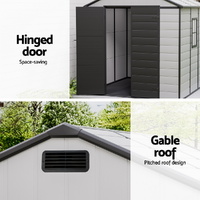 Keep your outdoor equipment, tools, and garden supplies organised with the Giantz storage shed, featuring a sturdy polypropylene (PP) construction for long-lasting durability. Designed with a gable roof for efficient water runoff and double hinge doors for easy access, this shed offers ample space and reliable protection.