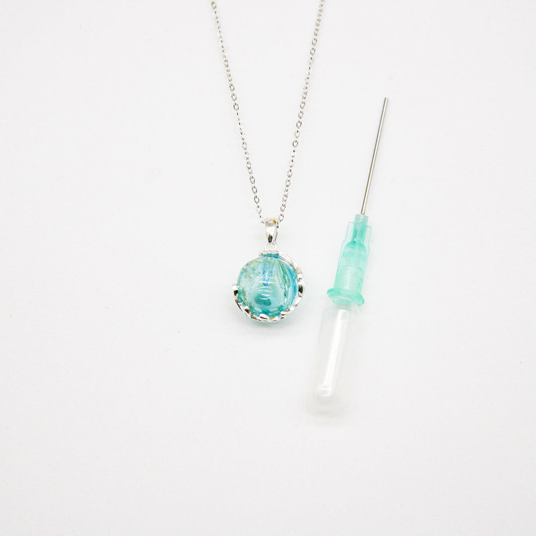 Gift Box - Aroma Necklace White Gold - Planet Celestial Aqua (Light Blue) + Purify Oil Blend