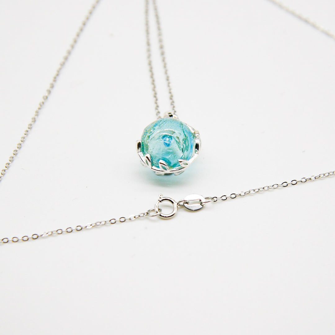 Elevate your style with our stunning new Planet Aroma Necklace, a harmonious blend of exquisite design and timeless aroma. Crafted with care, the pendant and chain gleam in 18k white gold plating, while the Murano glass pieces are meticulously hand-blown, each adorned with delicate gold flakes resembling celestial bodies with beauty beyond imagination.