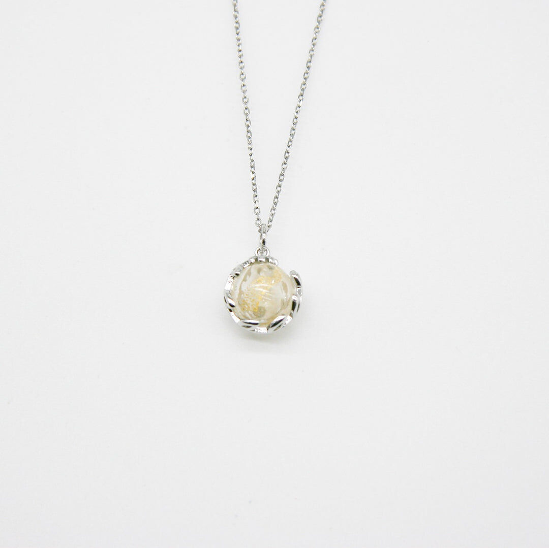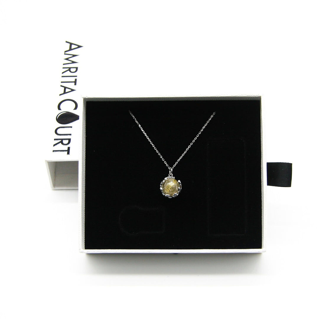 Gift Box - Aroma Necklace White Gold - Planet Stardust Crystal (Gold Clear) + Purify Oil Blend
