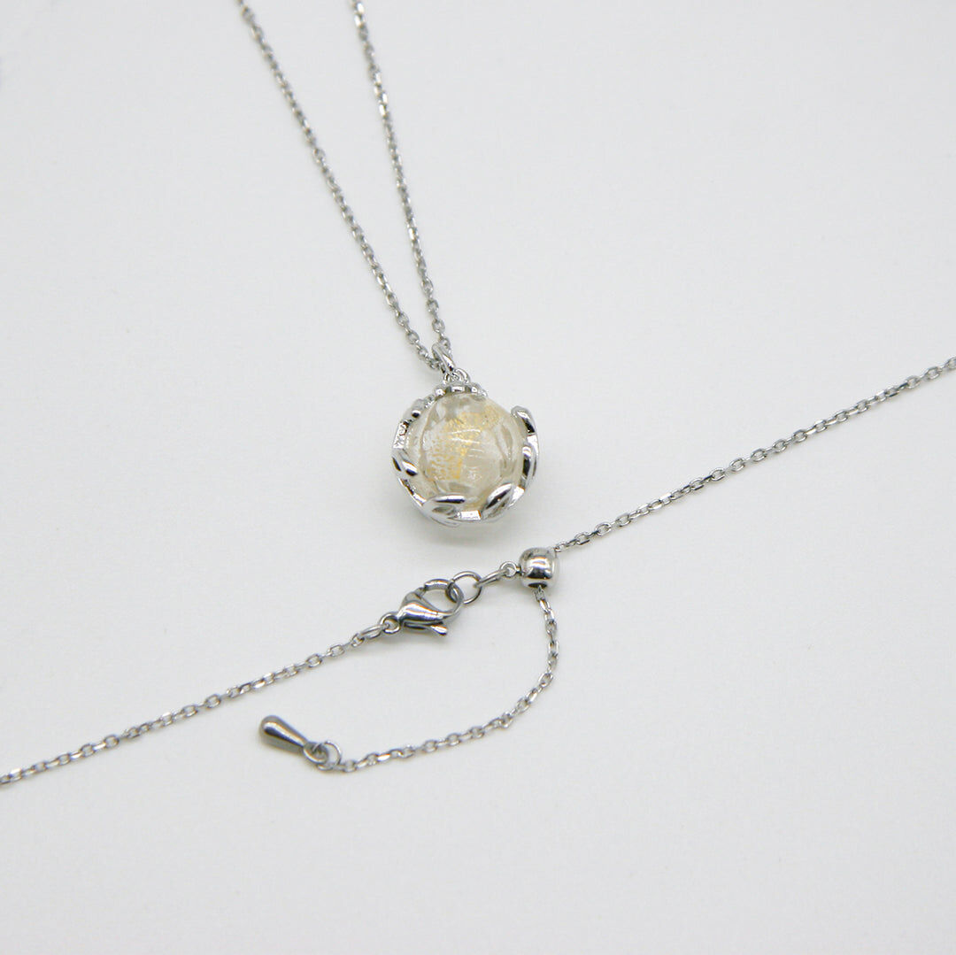 Elevate your style with our stunning new Planet Aroma Necklace, a harmonious blend of exquisite design and timeless aroma. Crafted with care, the pendant and chain gleam in 18k white gold plating, while the Murano glass pieces are meticulously hand-blown, each adorned with delicate gold flakes resembling celestial bodies with beauty beyond imagination.