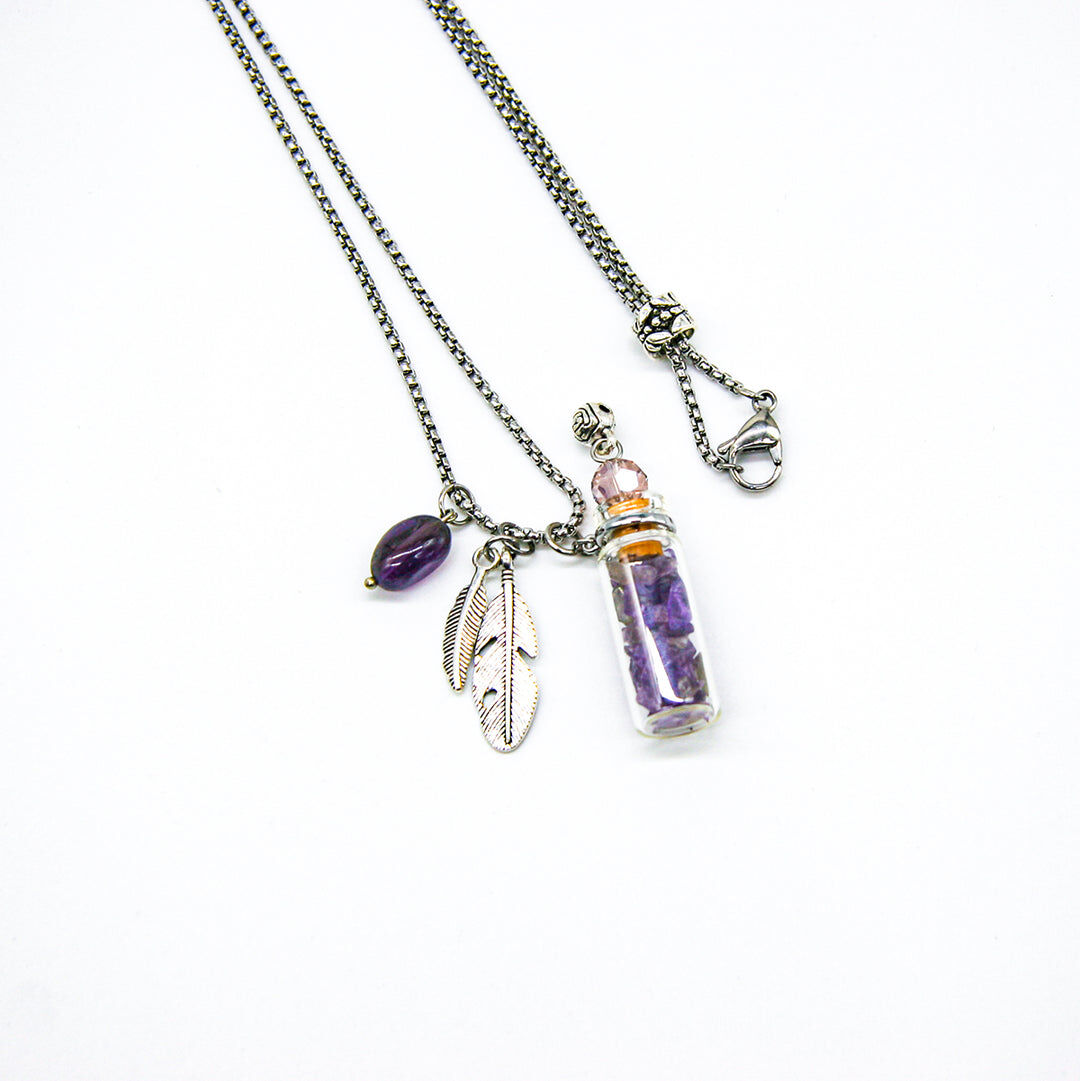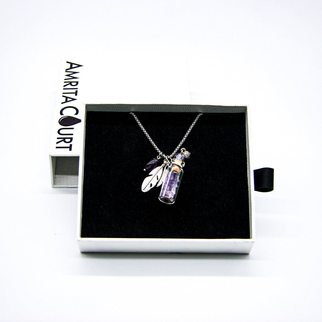 Our designer has smartly combined the beautiful crystal with the luxury of jewelry. On top of it, make it diffusing jewel when you walk around with your favorite aroma, beauty and energy. Using the tool contained, the delicate crystal bottle necklace is used to store a few drops of essential oil which will diffuse gently through softwood to create an atmosphere of protection and aroma when you are on the go.