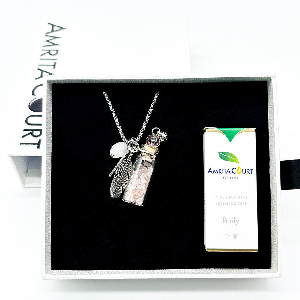 Each Package comes with a Necklace, a Purify Essential Oil Blend and a tool kit.