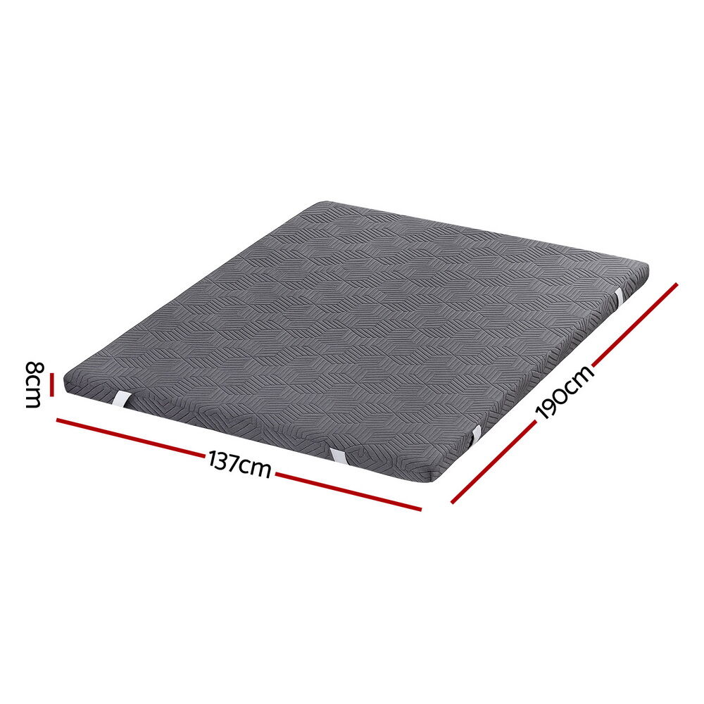 Experience restful sleep with this 8cm thick memory foam mattress topper from Giselle Bedding. Designed with dual-layer gel memory foam and a high-density base, it offers pressure relief and motion isolation. The bamboo cover is breathable, washable and secure.