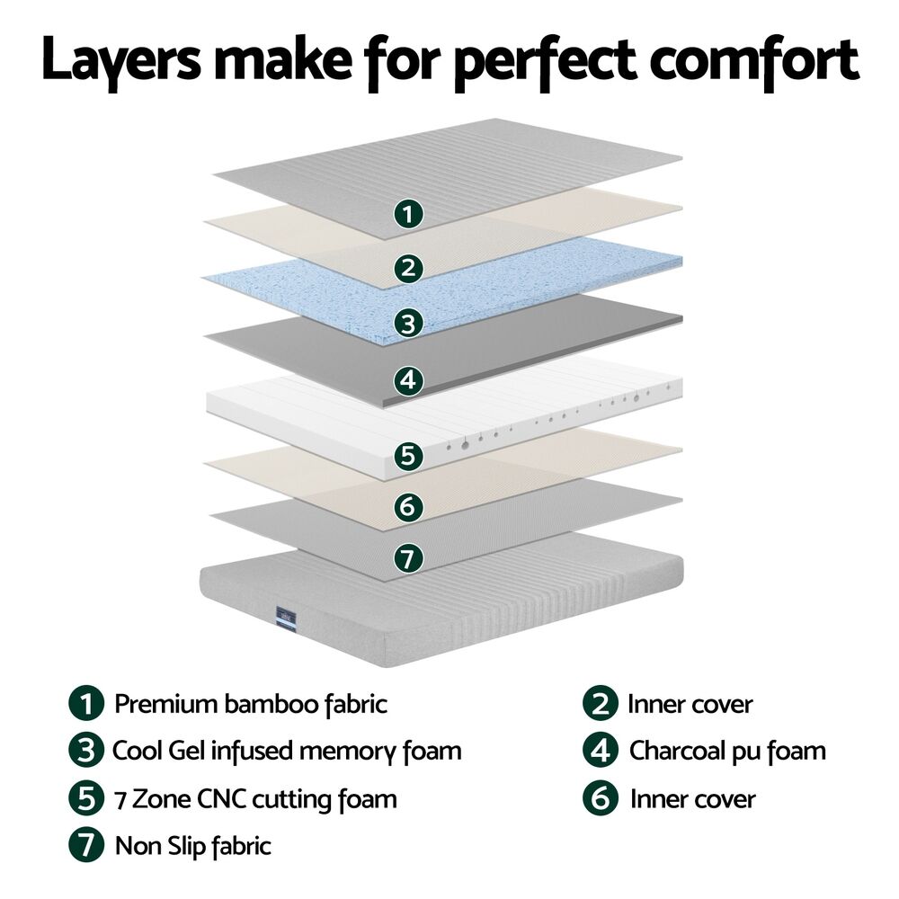 NOW $144.86Experience adaptive comfort in Giselle Bedding's NOBLE Series memory foam mattress. This 15cm profile features cooling gel memory foam with 7-zone CNC cutting for body-contouring support, combined with charcoal-infused foam for enhanced stability. The premium bamboo cover promotes airflow while being removable and machine-washable. Giselle Bedding's innovative design minimises partner disturbance, delivering medium-firm comfort perfect for compact spaces.
