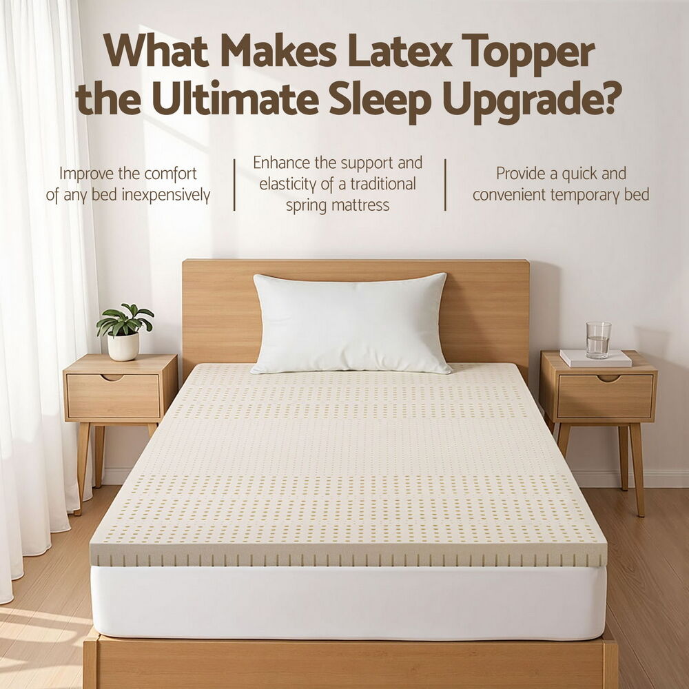 Enjoy the wonderful comfort and support of our 100% natural latex topper and you will never ever want to use any other type of topper again. Made of 100% natural pure latex, the 7.5cm thick topper incorporates many innovative functions for an exceptional resting comfort. These include a 7-zone comfort zone that comprises thousands of vent holes that provide multiple degrees of firm and soft support to suit your body shape. The honeycomb design is also highly breathable where the air cells offer better air circulation on both side of the topper. Better still, the topper is designed to isolate motion when in use, so that you can rest undisturbed at all times. Not least, the polyester cover can be removed for washing and the topper is also anti-bacterial and anti-dust-mite for healthier use.