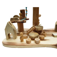 The multi levelset comes with 4 wooden figues and assorted furniture.