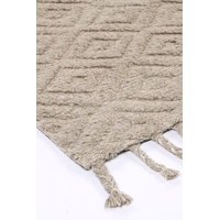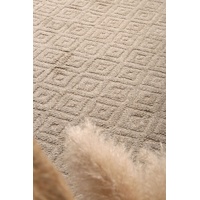 Tribal: Complete any setting with this hand made rug. Soft, lustrous wool yarns are hand-tuftedto create contrasting textures including oversized loops and flat surfaces that are rich in dimension, beautifully styled with classic geometric patterns. Crafted using a 70% wool and 30% Polyester blend, this rug will accent any space with its calm and neutral colour palette making it the perfect choice to add the finishing touch to any room in the house.