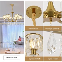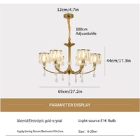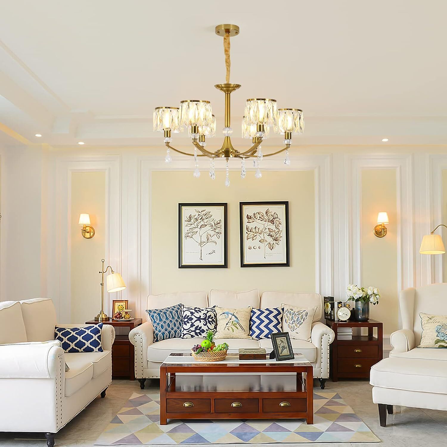 Gold Chandelier 6 Lights Wagon Wheel Clear Crystal