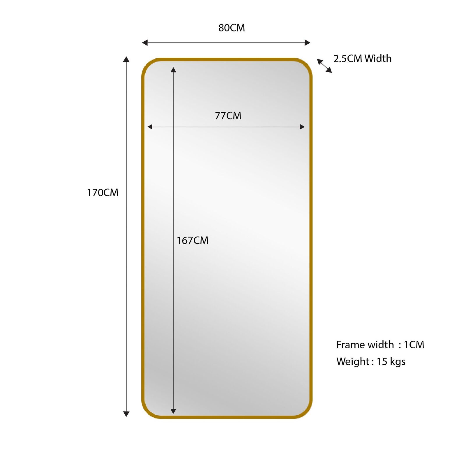 Total Mirror Dimensions: Length 170cm x Width 80cm x Depth 2.5cm