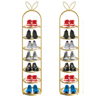 Gold Plated Metal Shoe Organizer Space Saving Portable Footwear Storage Shelf