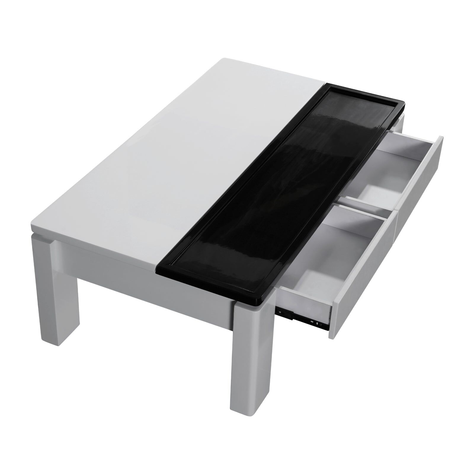 A high gloss finish in white black colour combine to make this Coffee Table an essential piece of furniture for your living room. A thick rectangular MDF top makes for a secure surface to hold any drinks or books. The contemporary design ensures this coffee table will make a stylish living room centerpiece, while effortlessly blending within any style of home interior.