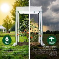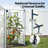 This weather-resistant greenhouse provides year-round protection for healthy plant growth. Its tear-resistant PE cover features a convenient zipper roll-up door for easy access.