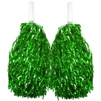 Show your support and stand out with these vibrant green metallic pom poms. They're the perfect addition to any cheer routine, ensuring you shine with every move. Grab your set today and let the cheering begin!