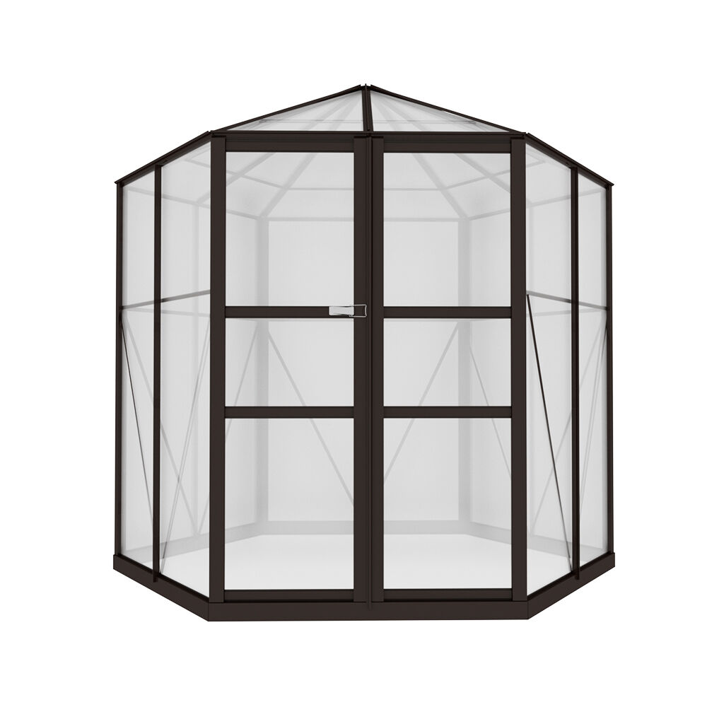 This spacious greenhouse has a massive volume and can accommodate a considerable number of plants and vegetables. Covered with twin-wall UV-resistant polycarbonate panels, the Green house allows up to 90% light transmission and helps to eliminate the risk of plant burn effectively. It also has a unique triangular Aluminium framework for enhanced durability and stability, two adjustable roof vents for good air flow and moisture and not least, an effective gutter system for smooth drainage.