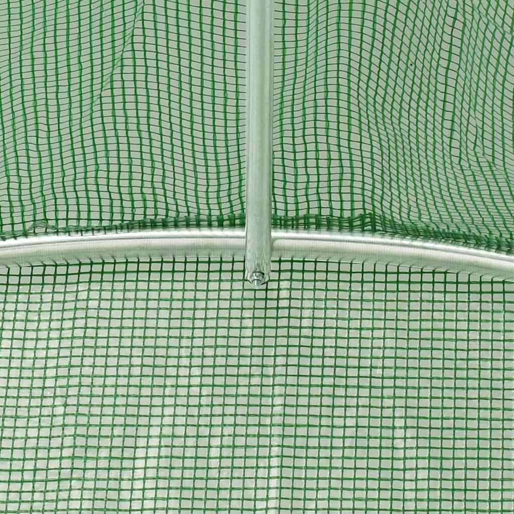 This spacious greenhouse can accommodate a considerable number of fruits, vegetables and plants. It is ideal for protecting your plants from adverse weather conditions. Durable PE cover: Polyethylene (PE) is the most widely used plastic material. It is UV-resistant, weather-resistant, anti-tear, lightweight, and easy to maintain. It also protects your plants against the damage from birds while offering heat preservation.Sturdy frame: Steel is an exceptionally hard and strong material. It offers sturdiness and stability. Galvanisation provides better protection against corrosion and is useful for products that'll be used outdoors as well as in harsh environments.Practical design: The plant house is designed for easy access and optimized air circulation thanks to its zippered roll-up door and 4 side roll-up mesh windows. Good to know:We recommend adding the foundation for added sturdiness. The roof of the greenhouse cannot withstand heavy snowfall.